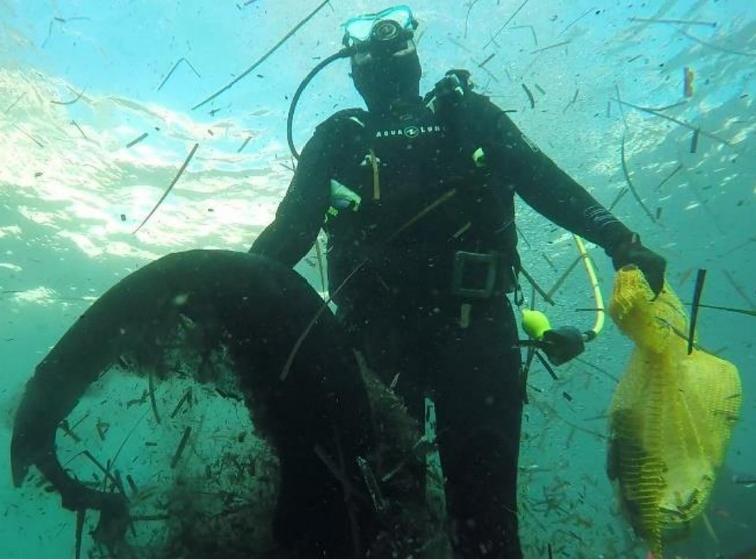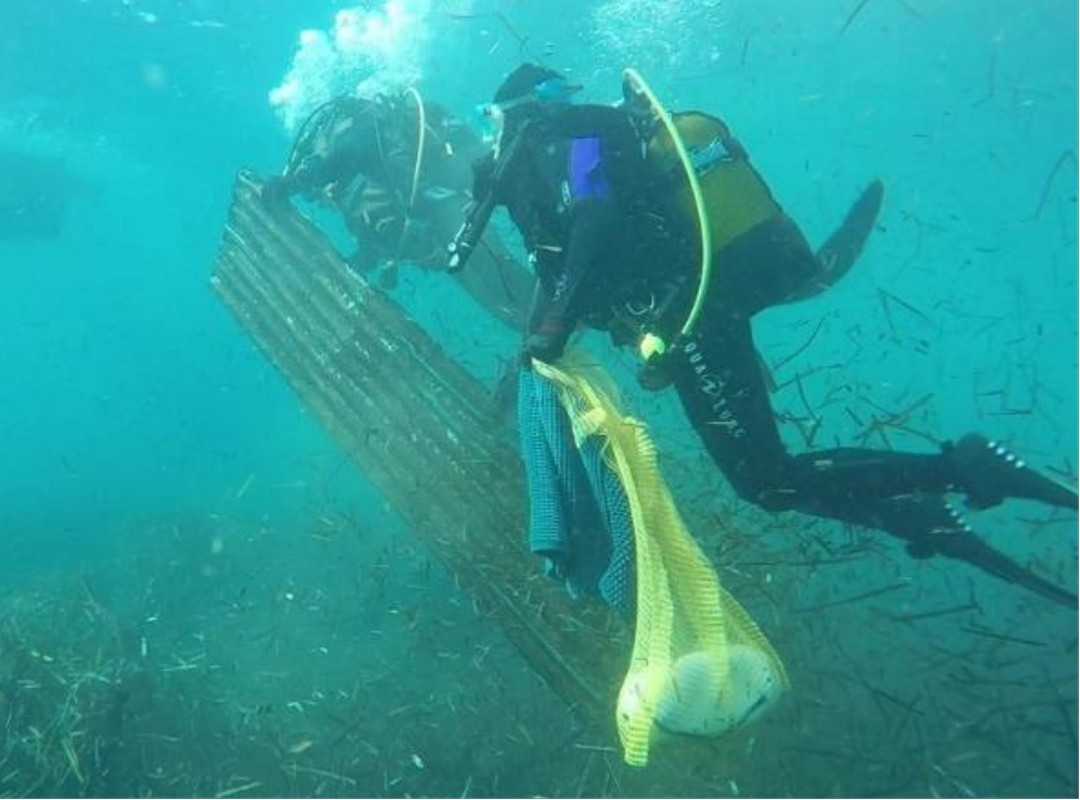bénévoles à terre. L’association retire chaque année environ 30 m3 de déchets du milieu marin.